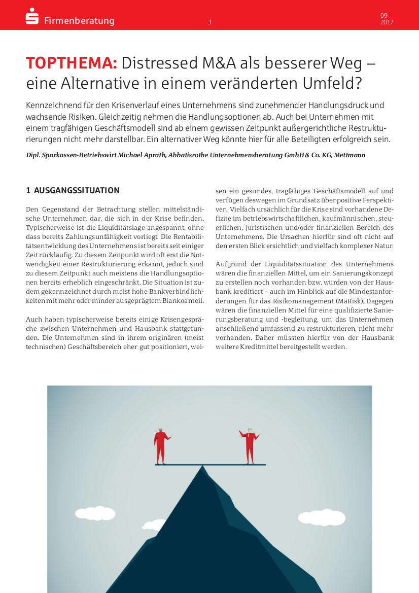 "Distressed M&A als besserer Weg - eine Alternative in einem veränderten Umfeld?" Fachmagazin S-Firmenberatung, September 2017, Deutscher Sparkassen Verlag